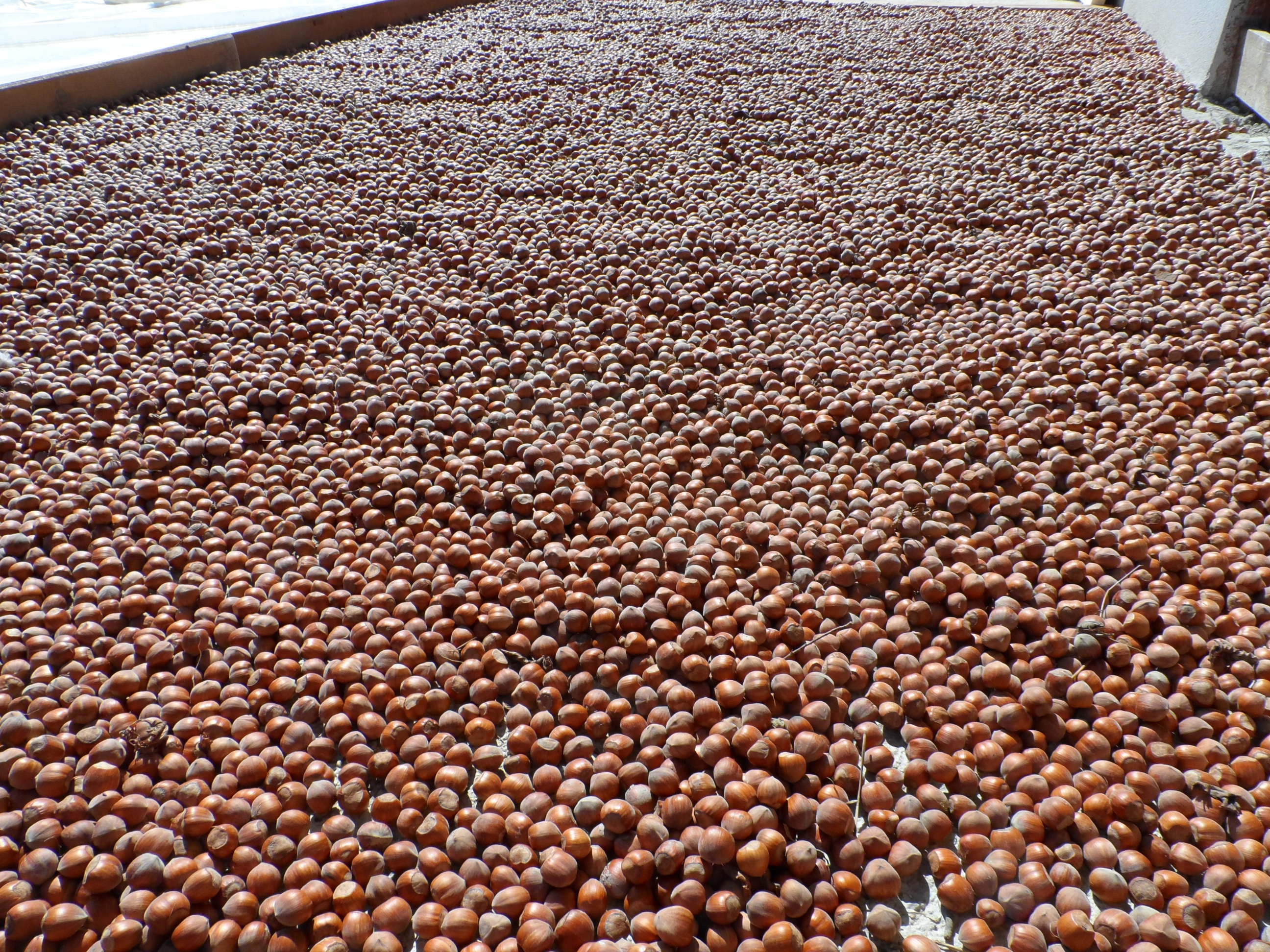 Una volta pulite, le nocciole vengono messe ad essiccare nel cortile sul marciapiede come si usava in passato. poi viene Messa in Stoccaggio in Gabbie . e poi ce il passaggio di Calibratura e Sgusciatura .